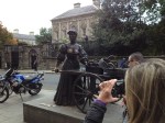 Trinity College was a few minutes away, so we relaxed on the bus for a bit. By this time, the sun had come out a little and the weather brightened a bit, which was great for us. My legs were feeling a little tired, but for the most part I felt like I was doing okay. When we got to Trinity College, we walked through the gates and onto the campus, which was buzzing with students. The college has about 16,000 students, so it’s a decent sized school and the campus itself is very large. We wanted to go see the Book of Kells, a 9th century Gospel written by Celtic monks with very ornate drawings. It is quite a sight to behold and is the main attraction at the college. What we thought was better, however, is the library itself. The library at Trinity College is a copyright library, meaning it is entitled to hold any book of material that is published in Ireland. They have an immense collection of books going hundreds and hundreds of years that you can walk through. As soon as you enter the room, you can smell all the old books. They do have some items on display, but most of the library is sectioned off by velvet ropes so you can see the books, but you can’t touch them. Called the Long Room, it houses the books as well as marble busts of famous writers adorning the room. It’s amazing to see. Unfortunately, you are not allowed to take pictures anywhere in the library so we couldn’t get shots of anything, which is too bad, because you have to see it. I’ll always remember it.